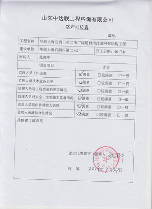云南華電鎮(zhèn)雄電廠超低排放改造項目客戶回訪表