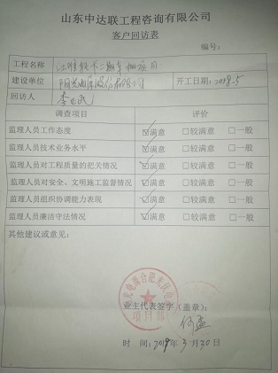 武邑風電項目客戶回訪表