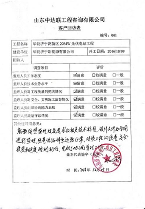 華電國(guó)際萊城發(fā)電廠回訪表