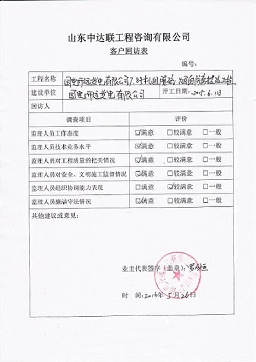武邑風(fēng)電項(xiàng)目客戶回訪表