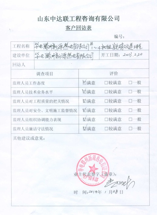 華能武漢發(fā)電有限責(zé)任公司回訪表